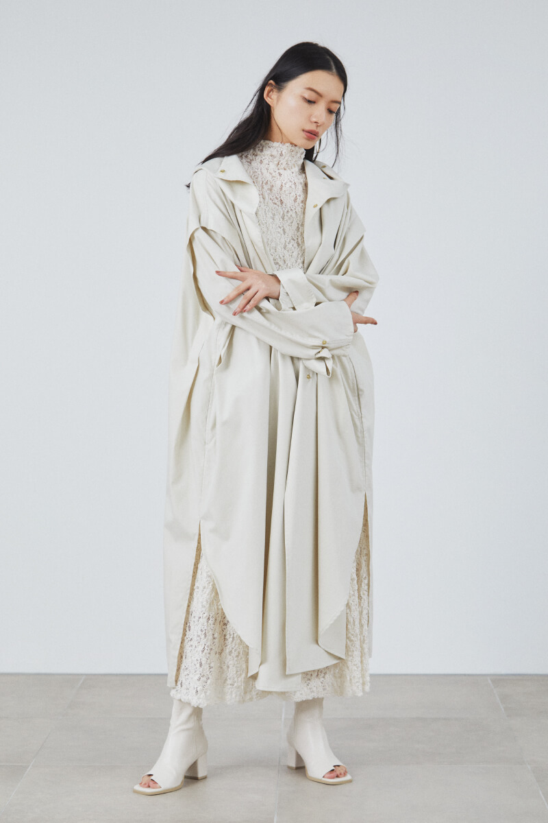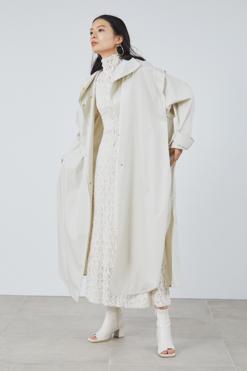 Coat ¥26,000+tax, Dress ¥26,000+tax, Ear cuffs ¥5,400+tax, Shoes ¥16,000+tax