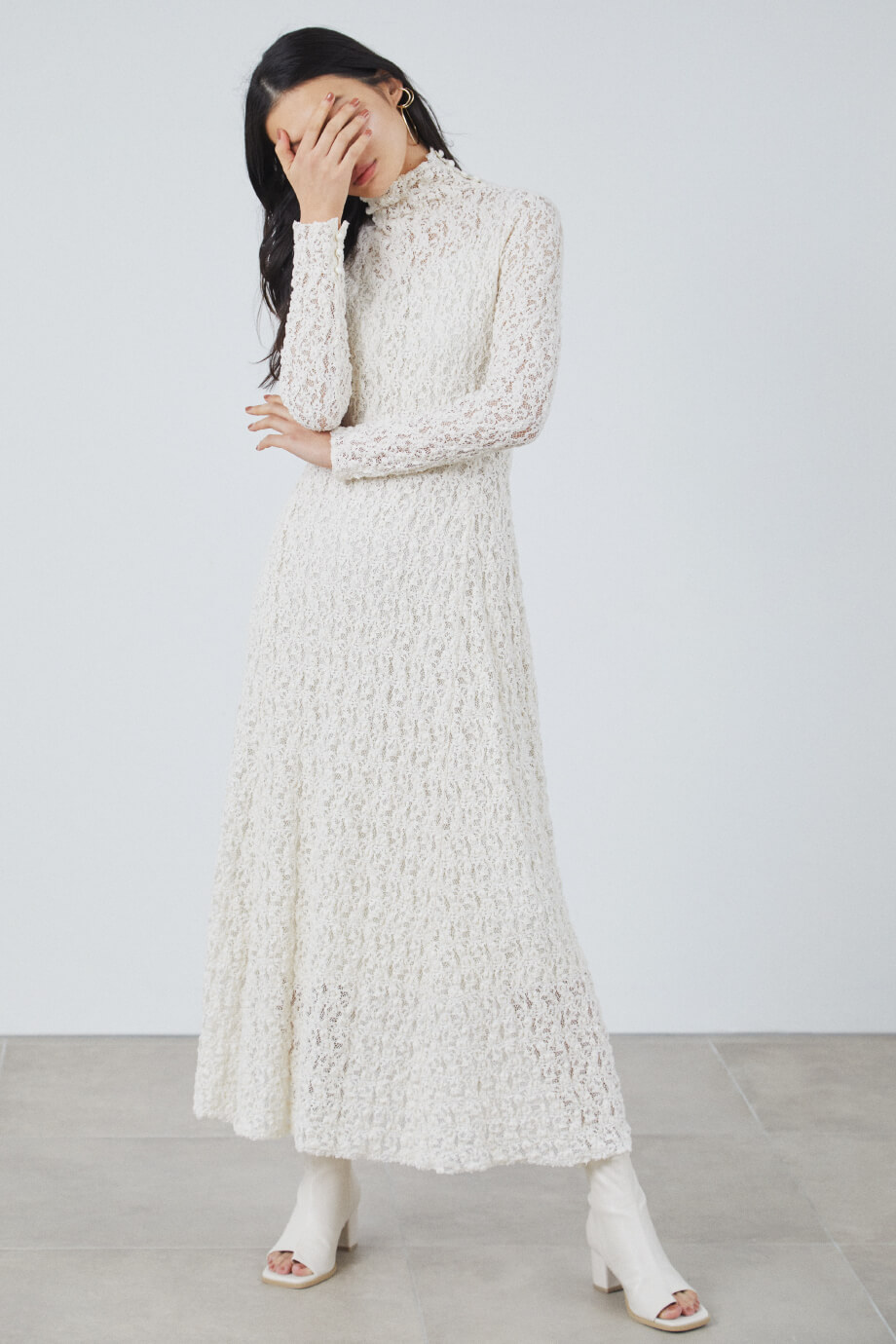 Dress ¥23,000+tax, Earrings ¥5,800+tax, Shoes ¥16,000+tax