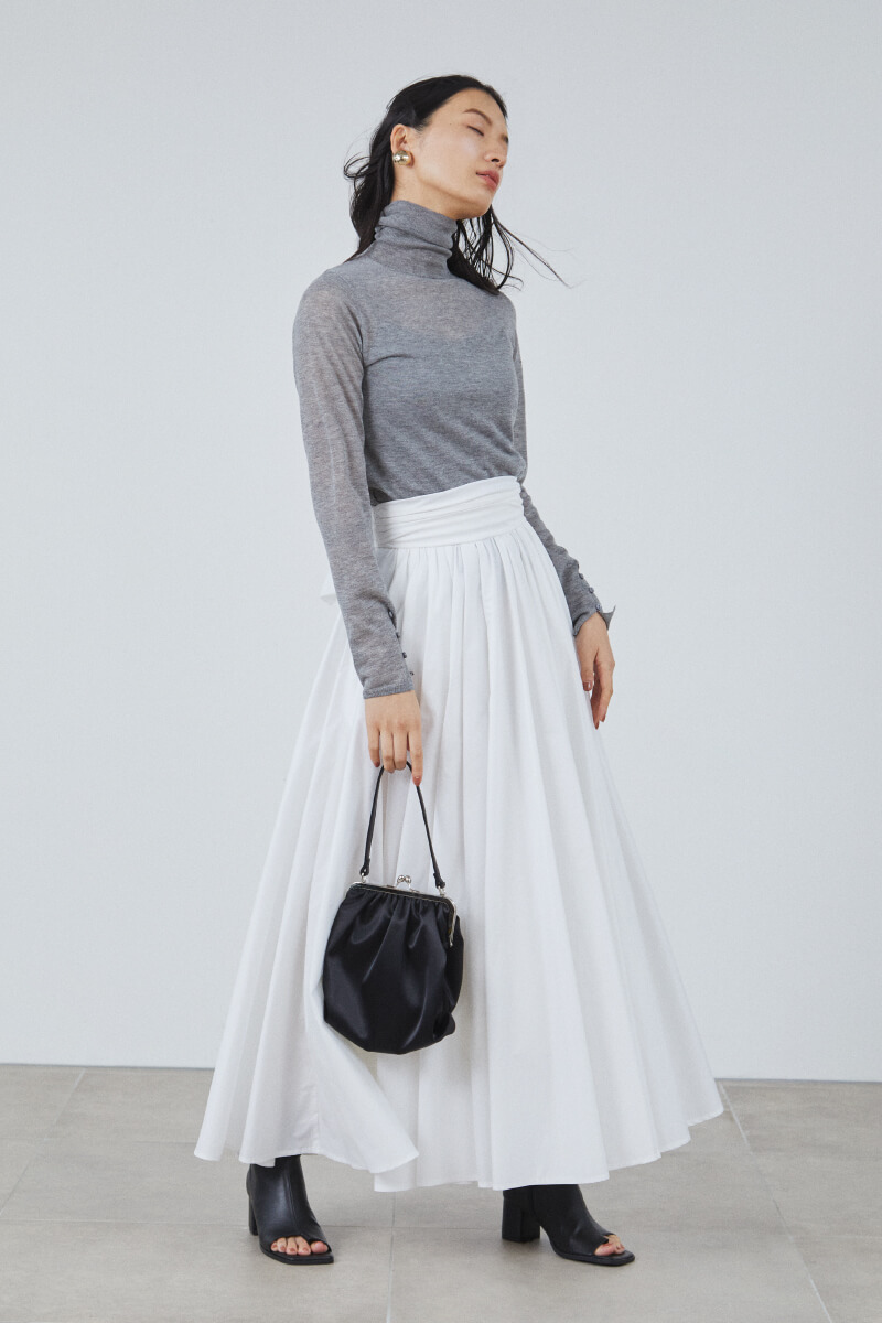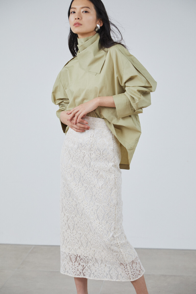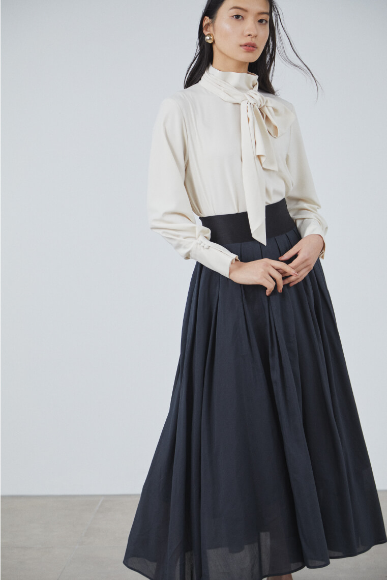 Blouse ¥15,000+tax, Skirt ¥26,000+tax, Earrings ¥5,800+tax