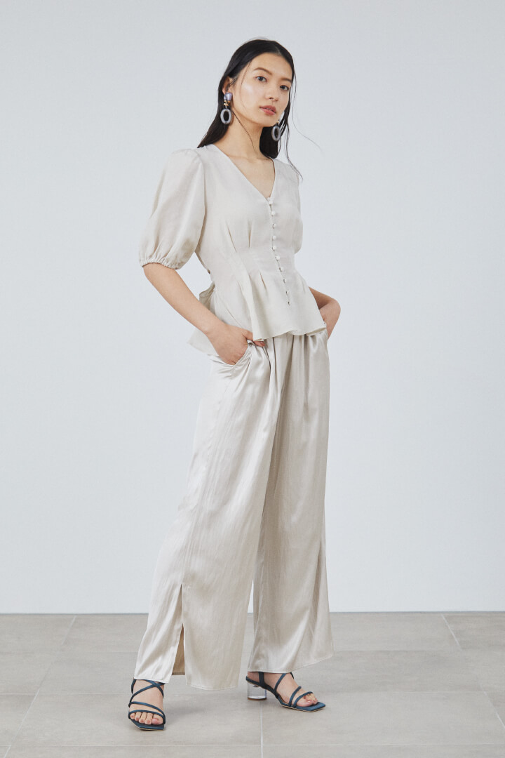 Blouse ¥13,500+tax, Pants ¥13,500+tax, Earrings ¥6,800+tax, Shoes ¥13,500+tax