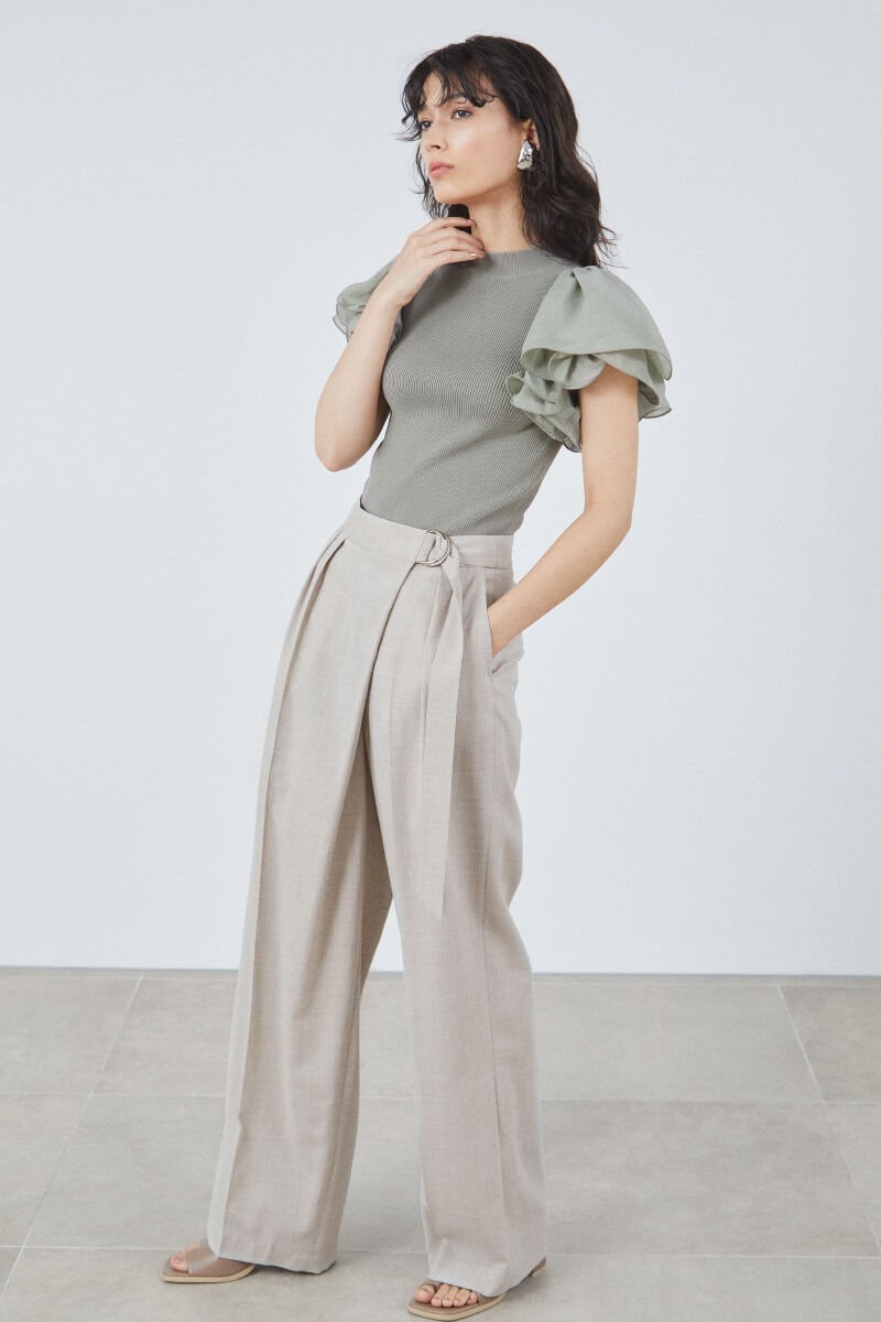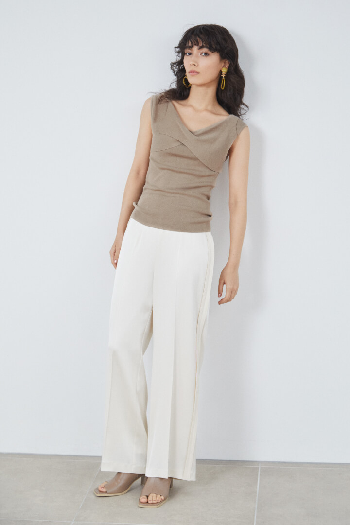 Knit tops ¥13,000+tax, Pants ¥17,000+tax, Earrings ¥6,800+tax, Shoes ¥16,000+tax
