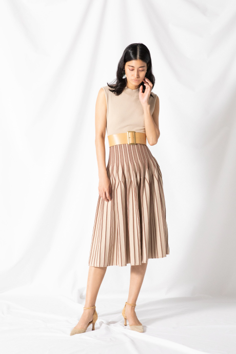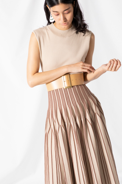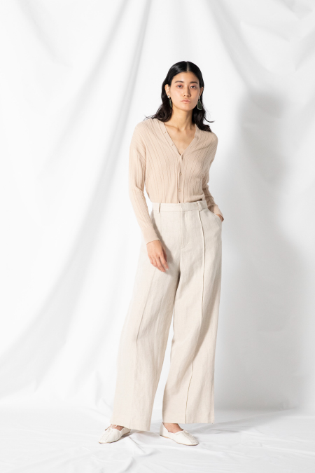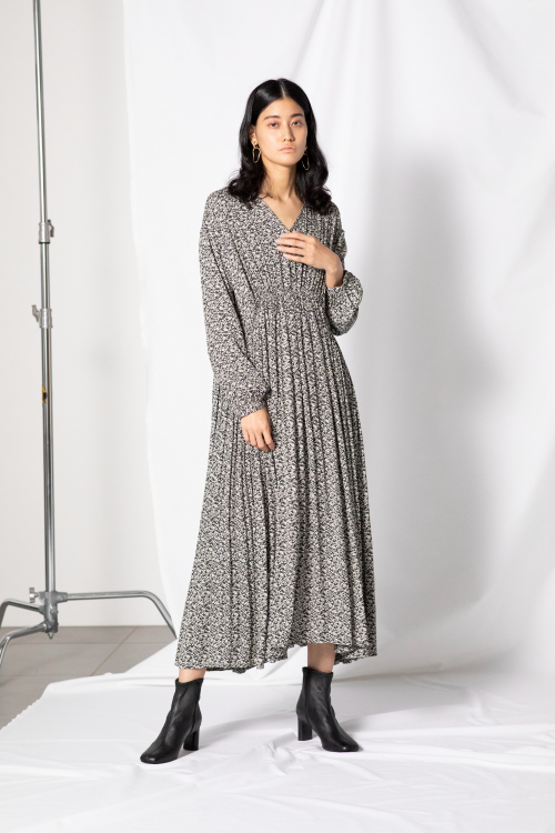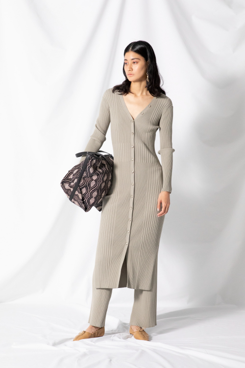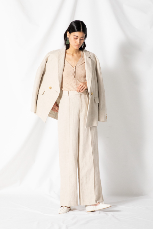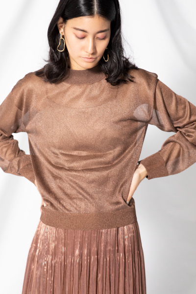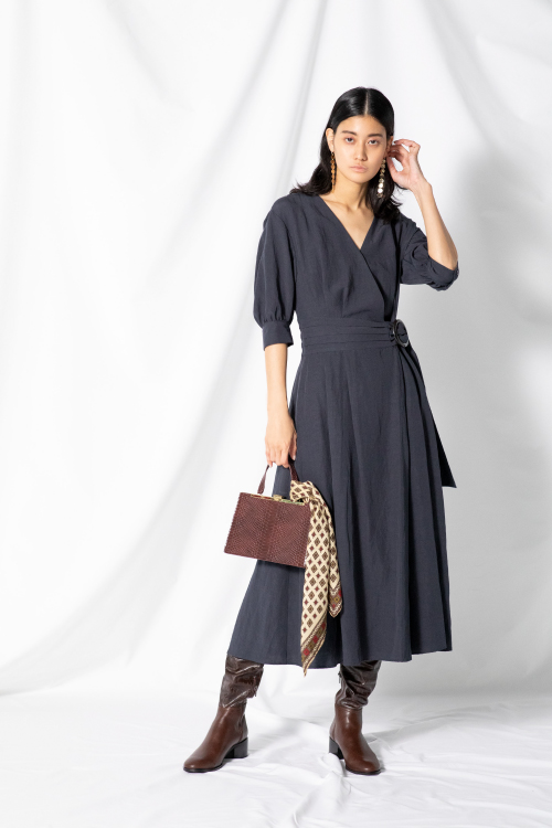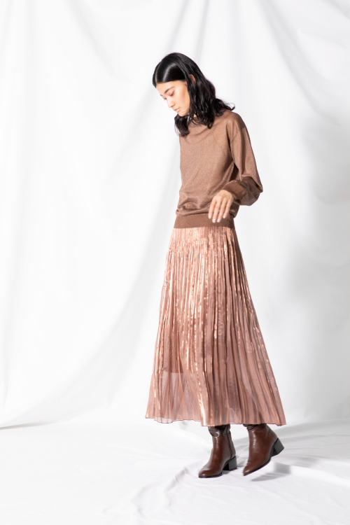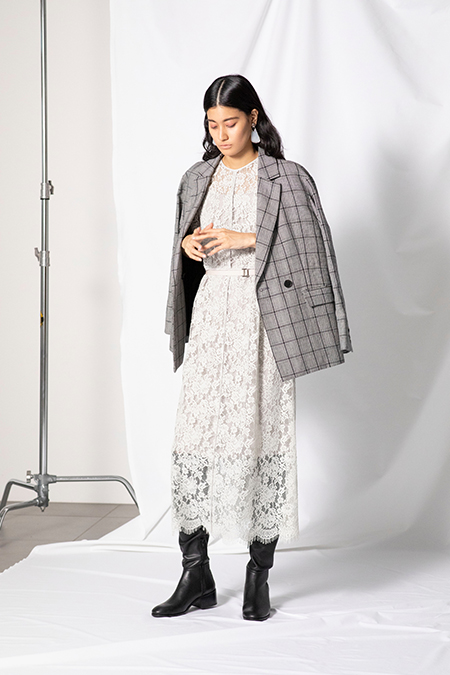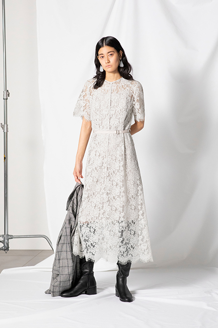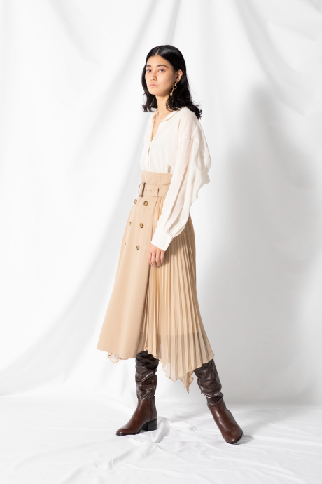 ニュアンスのあるカラーリングや女性らしさを強調するナローシルエットなど、旬をおさえたキーピース。 秋らしいルックスながら、リネンやシースルーなど夏の素材を採用することで 今すぐに着用できるデザインに仕上げました。