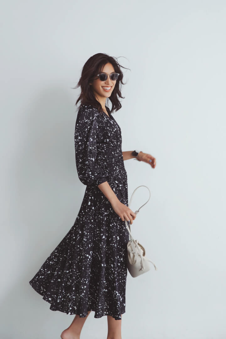 Dress ¥23,000+tax, Bangle ¥7,200+tax, Bag ¥8,600+tax, Shoes ¥14,000+tax
