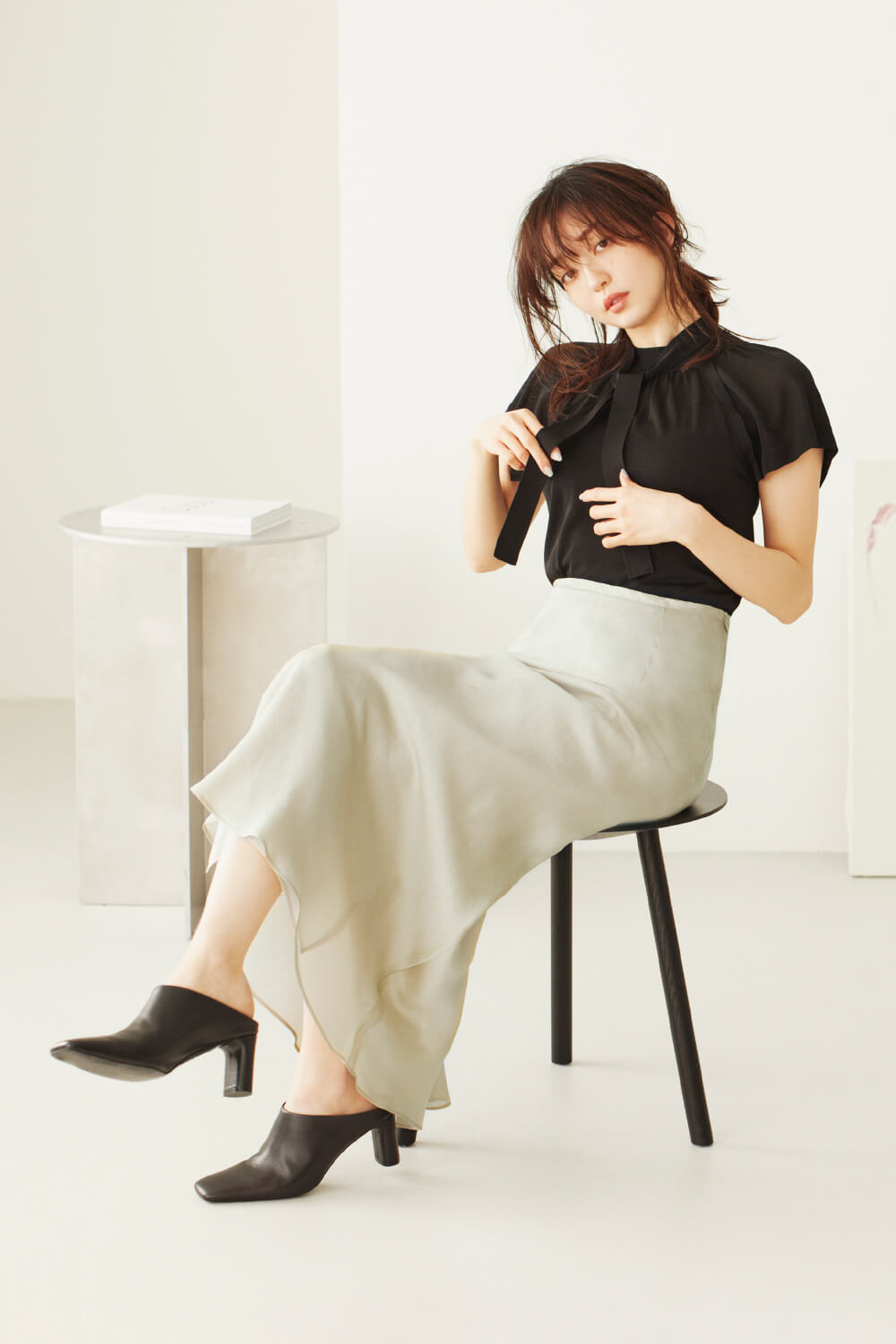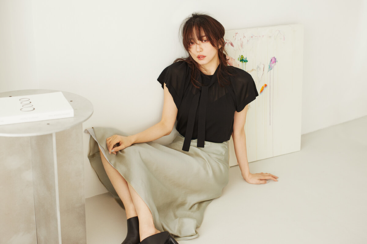 春のワードローブをアップデートしてくれる、美しいシルエットのトップスやスカート。 生地選びから厳選された上質なアイテムは、自然と目を惹きつける色っぽさがあります。 肌触りや機能性にも拘った、春コーデに華やぎをプラスしてくれる 「マストバイ」アイテムを松島花さんが着こなします。