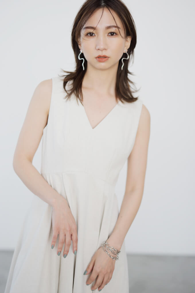 Dress ¥20,900, Pierced earrings ¥7,040, Shoes ¥12,100