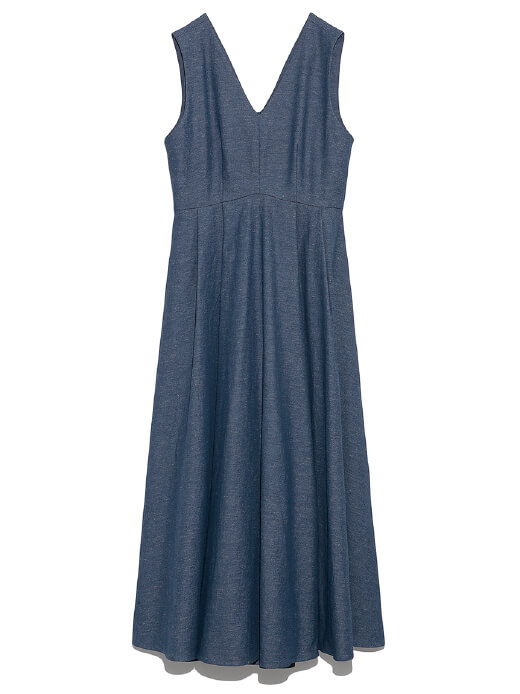一見シンプルながら、すっきりしたVネックと立体感のあるタックスカートがつくるシルエットが美しいワンピースがEC限定で登場。夏らしいIVORYとNAVYをご用意いたしました。羽織やインナーを合わせてシーズンレスに着こなすのもお勧めです。