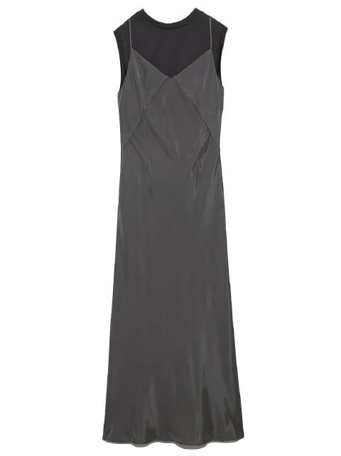 さらっとしたツイルサテンのキャミソールワンピースと、バックスタイルのドローストリングが洒落たカットソーがセットに。それぞれ別々にも使える、着回しが利く一着です。カジュアルなアイテムながら、どちらも女性らしく魅せるディティールを施し大人な着こなしが叶います。