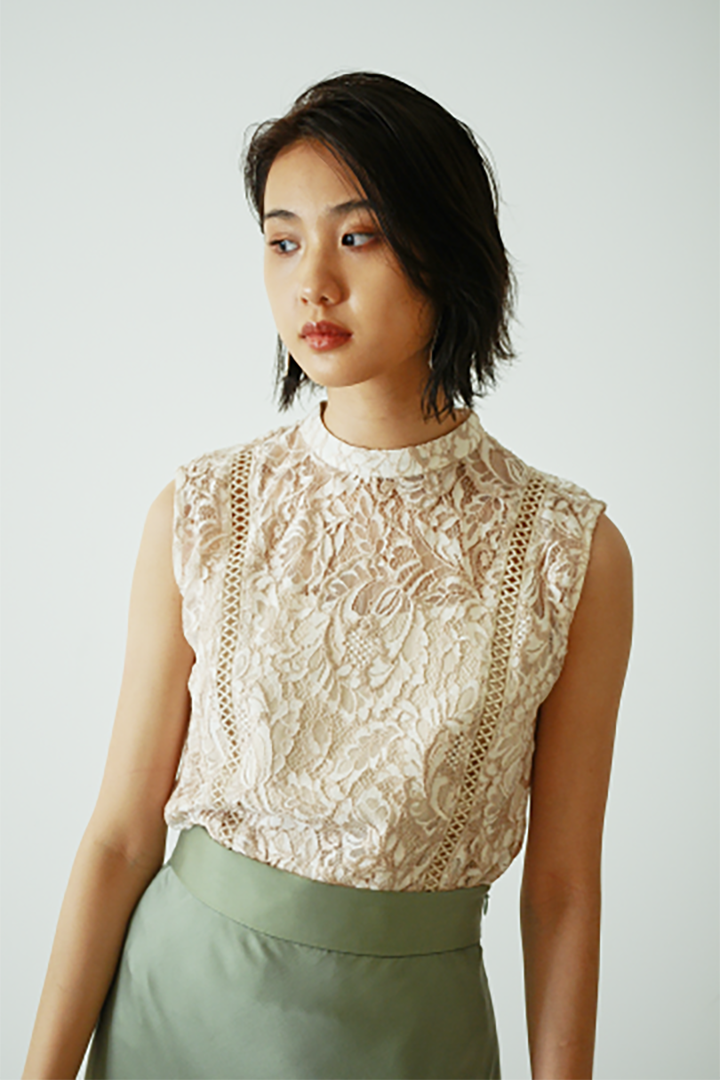 レースハイネックブラウス¥14,200+tax