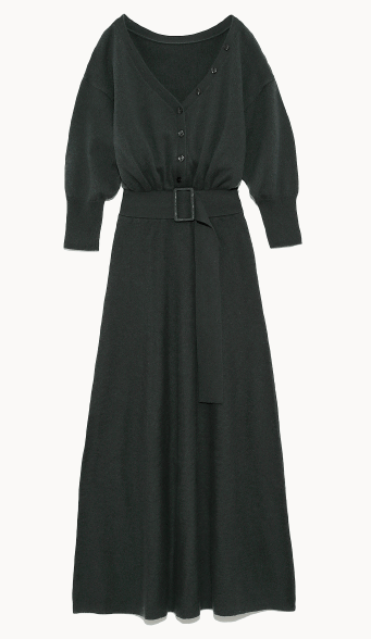 ウールカシミヤボタンフレアーワンピース