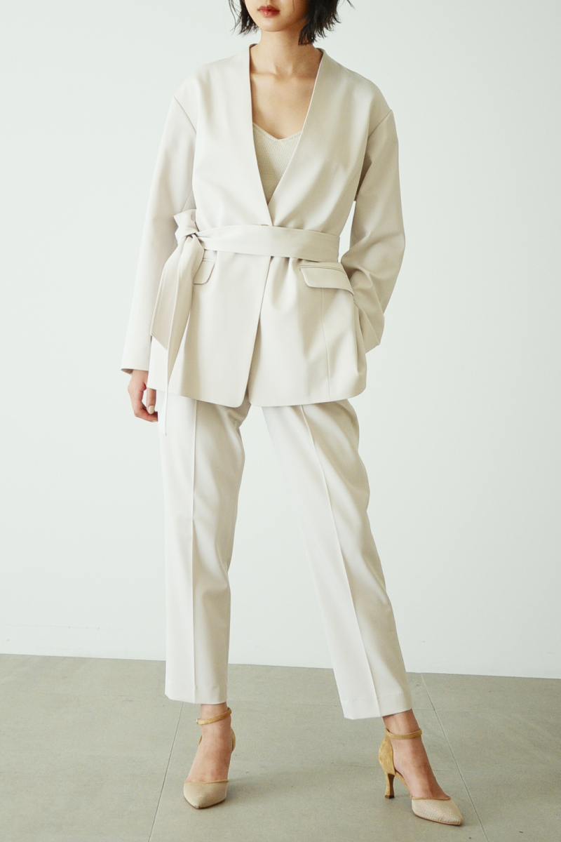 ベルトの取り外しで、印象を変えて着られるジャケットは程よいビックシルエットでトレンド感もあり、寒くなったらインナーにニットも着られます。ベルトを結んで、ワンピースやスカートに合わせ女性らしく、ヒップが隠れる丈感なので、タイトなパンツスタイルの腰回りカバーにも。着回しに万能な、週3で着たいジャケットです。