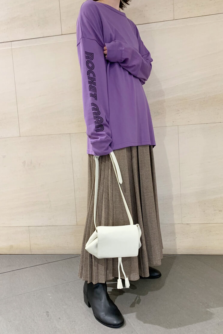 垢ぬけて見える、Tシャツ×ワンピースのレイヤードコーデ。足元にブーツを合わせモード感をプラス。